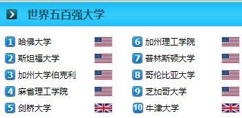 2013年“世界大学学术排名”结果显示:美英大学的优势仍然非常明显,哈佛大学连续11年蝉联全球第一,斯坦福大学、加州大学伯克利分校、麻省理工学院、剑桥大学、加州理工学院、普林斯顿大学、哥伦比亚大学、芝加哥大学和牛津大学分别位列第2至第10名。
