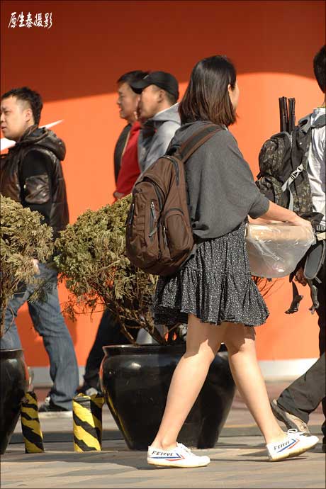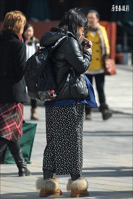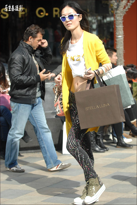 有道是:美丽的女人都很相似,雷人搞笑的女人各有各的不同。在国内时尚飞速发展的今天,北京的街头除了经常能看到打扮入时,看上去非常养眼的时尚潮女,也难免会出现一些有“东施效颦”之嫌的所谓“潮女”。在街头出现的她们,由于穿着打扮别出心裁、与众不同,因而也一样会很抓路人的眼球,但是,和对待真正的潮女态度不同,人们投过去的一定不是赞许的目光,有些情景甚至会令人忍不住爆笑,狂喷不止。 上述现象说白了,就是时尚没把握好,一不留神就变成非主流了,有些则是个人修养的问题。本组图片近日由原生泰实拍于北京街头,大都是打扮或举止很值得商榷的“潮女”。很显然,她们的亲友或闺蜜没有给她们直白的建议或者她们压根就不听或者来不及听,她们出门前或者在街头有这些举止时来不及照镜子。看过这组图片后,原生泰反正是笑了,你笑了吗?
