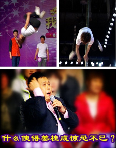 今晚,黄长健与他的搭档表演的空中竿上表演,非常惊险刺激。首先他的搭档把一根高6米多的竹竿扛在肩上,在没有任何防腐措施的情况下,黄长健在高度6米(包括底下的人共7米多高)的竹竿上,表演了多种高难度的惊险动作,令在场的所有观众与三位评委老师叹为观止,叫绝声一片,真可称得上是“艺高胆自大”,虽然观众与评委们被他们的惊险表演吓出了一身冷汗,但是他们两个表演完显得轻松自如、非常的淡定,这就叫真正的“功夫”,黄长健与他的搭档最终顺利晋级,希望黄长健能够闯进年度总决赛,获得好成绩。衷心祝福您----杂技小子黄长健!