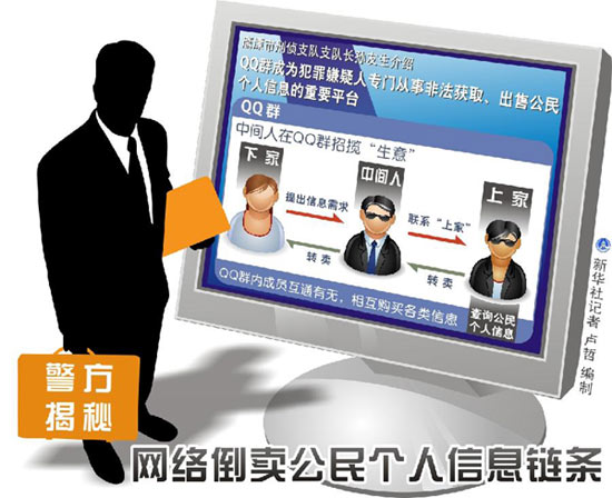 “黑土草莓”系湖北省某市水利设计院驻鹰潭的一名工作人员,2010年起,通过加入QQ群专门从事非法获取、出售公民个人信息活动。他告诉记者,一般一条信息的出卖经过“上家”“中间人”“下家”三个环节。即先由“中间人”通过网上、QQ群发布广告,招揽生意;“下家”向“中间人”提出信息需求;“中间人”联系能够提供这些信息的“上家”,再进行转卖。