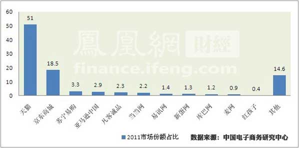 2011年中国B2C市场份额占比排名