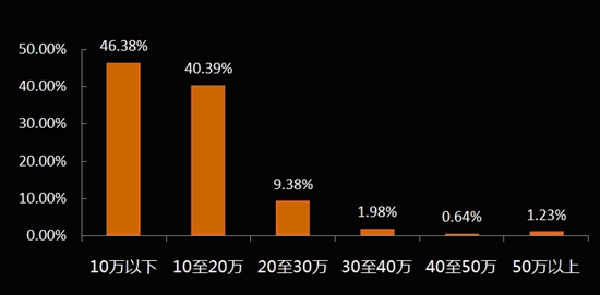 对于青岛互联网的紧缺的技术职位,青岛企业提供的薪资在10-30万元之间,是当地行业平均5万年薪的2-6倍。在青岛互联网行业整体薪资结构中,绝大部分从业人员的年薪位于20万元以下。其中,46.38%的从业人员年薪不超过10万元,40.39%从业人员的年薪为10-20万元。