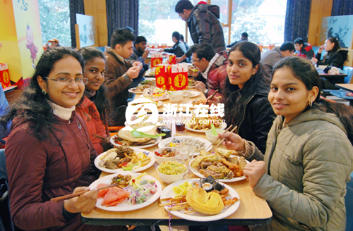 虽然还没到自己国家的春节,可这诚意满满的中国年夜饭让浙大500多位留学生开了眼界、开足了“胃动力”,有的更是拖家带口,共享美食盛宴。巴基斯坦的留学生亚斯尔吃得直竖大拇指:“味道杠杠的”!